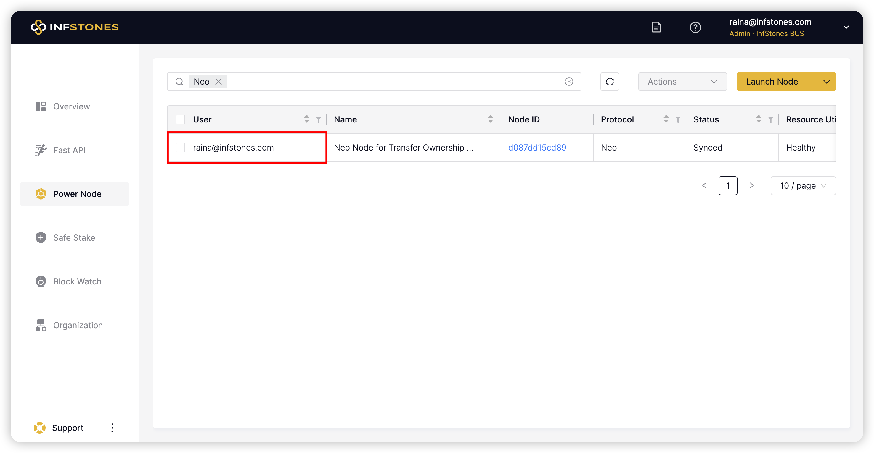To transfer node ownership, select the node you wish to transfer, then click the Action -> Node -> Transfer Ownership .